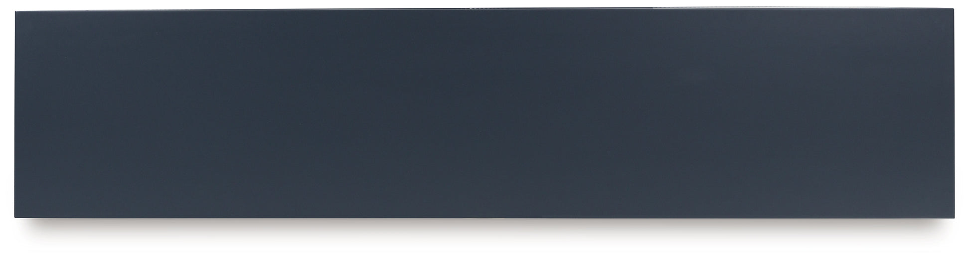 Details Made with solid wood, engineered wood and cast resin components, Dark blue finish, Goldtone metal legs, Door fronts with geometric pattern, 4 doors with magnetic push latch function, 2 adjustable shelves, Openings in back for electronics, Minor assembly required, simply lay flat and attach feet